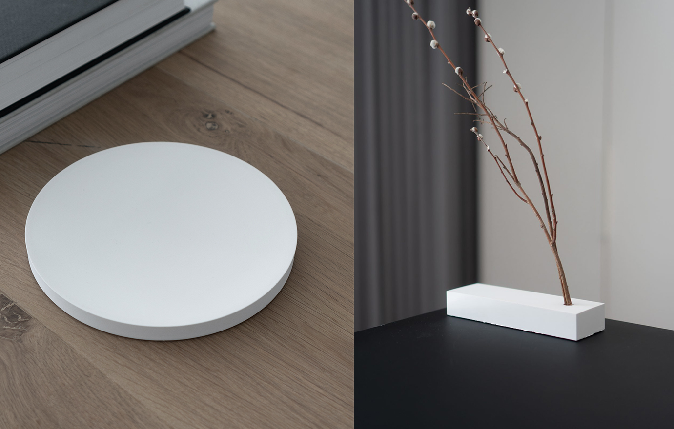 The simplicity in the objects brings focus on the understated casted stone. The objects are refined in their size and details and contain an architectural relation, to subtly enhance a space.